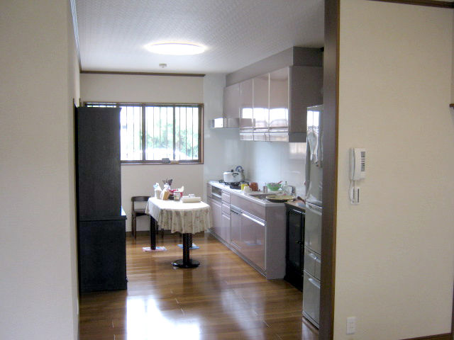壁と扉を取ってキッチンとリビングがつながり、広々とした空間になりました