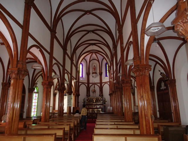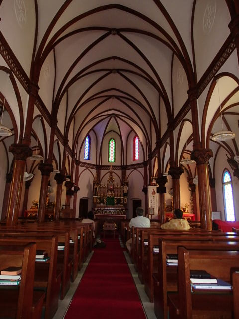 大正時代に完成した物なのですが 内装は 船底天井に 島の花 ツバキを模した花装飾は 本当にきれいでした