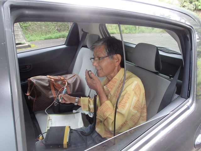 城山展望台にてポータブルタイプの無線を持参