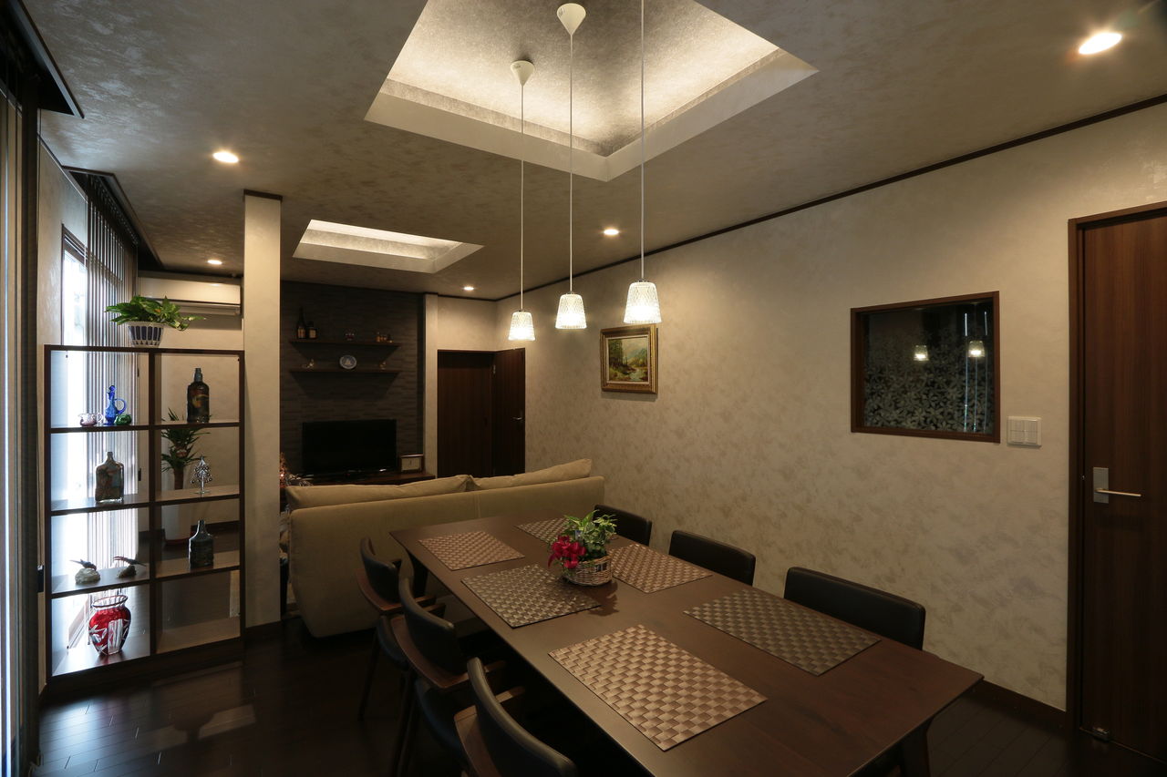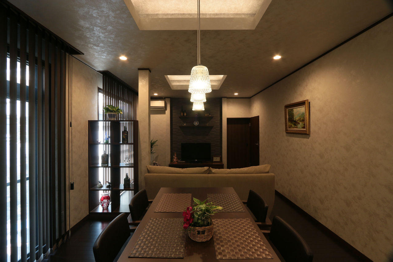 プロにお任せした 天井・壁クロス 縦型ブラインド 家具それぞれが良さを主張し合い しっかりまとまった空間を作り上げていますね