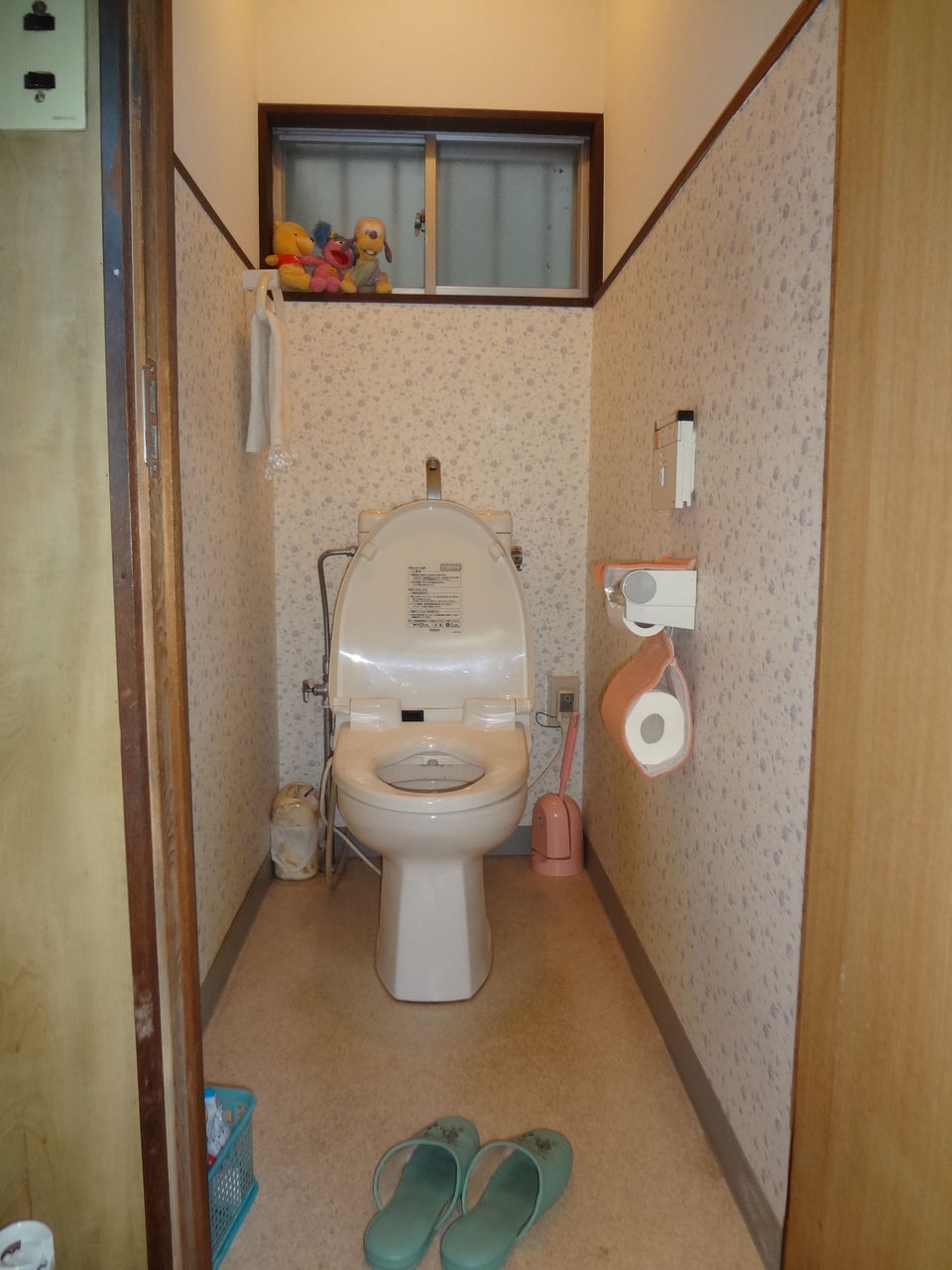手洗い器の下には トイレットペーパーや掃除道具を収納するところがあります