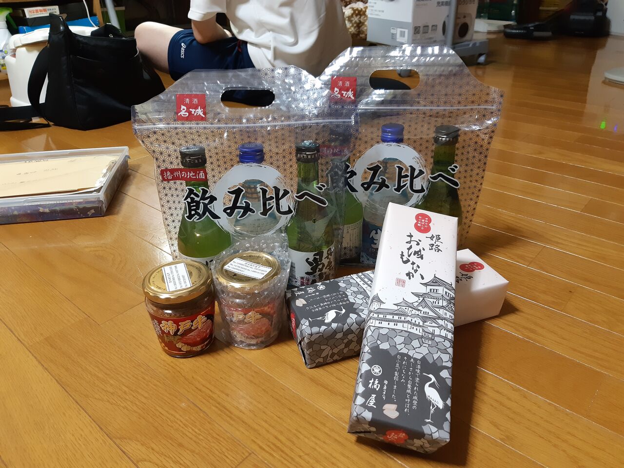 長男からは、飲み比べ日本酒と最中などをいただきました。