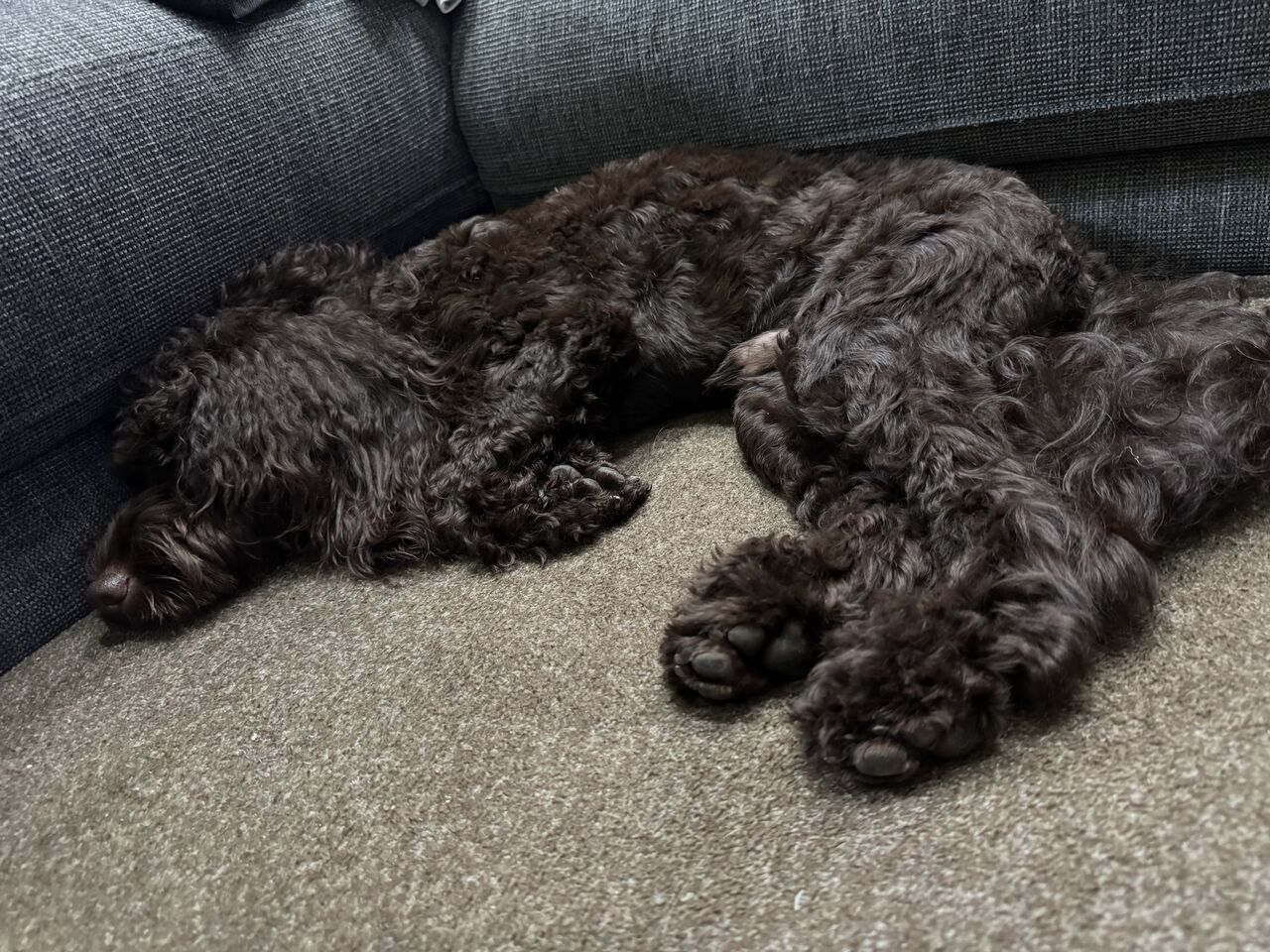 ソファーの角に陣取って 一緒にお昼寝するのが大好きです