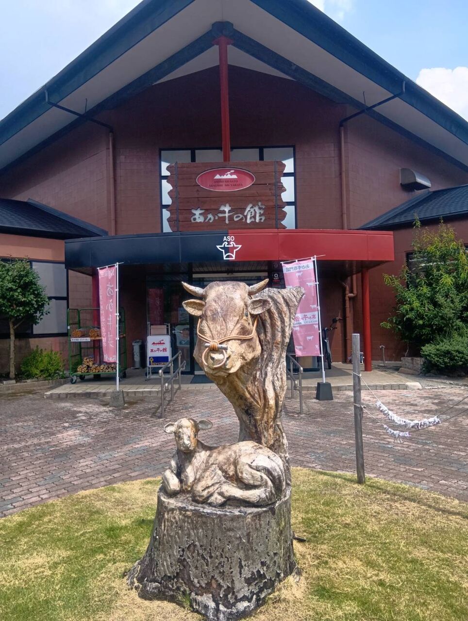 あか牛の館の入り口前にはチェンソーアートで飾られた
